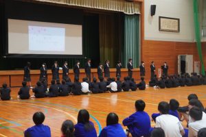 4月10日(金)生徒会主催の新入生オリエンテーションが開かれました。まず、生徒会長から今年度の生徒会本部の紹介に続き、今年度のスローガン「ONE TEAM」の紹介と活動方針の説明に続き、各委員会の活動の紹介がありました。また、部活動ごとに紹介とパフォーマンスを行いました。2,3年の先輩の1年生を見る優しいまなざしや1年生が見る先輩へのあこがれや尊敬がしっかり伝わってくるあったかい会となりました。