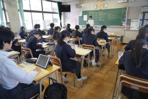 本日、本校に NHK Eテレ の取材が入り、1年生の国語の授業で行っている「俳句」の学習の様子を撮影していただきました。俳句を教育活動の中にうまく取り入れている学校として、本校の取り組みに関心をもっていただき、取材していただいたものです。