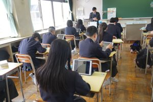 3月9日(月)5校時に、福井県敦賀市、瀧澤助産院の助産師、佐野裕子先生にお越しいただき、1年生が「性といのちの学習」を行いました。