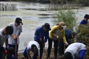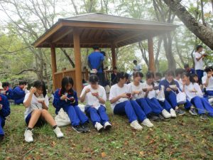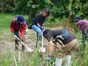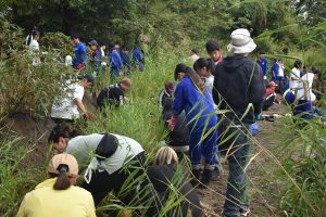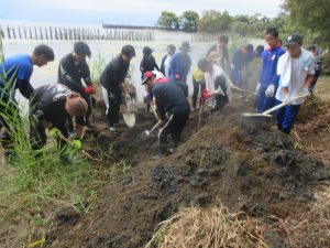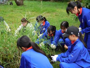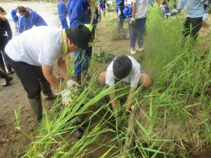 開会式が終わると、各学年に分かれ、まず湖岸のゴミ拾いをし、その後、1200本のヨシ苗をみんなで協力して南浜緑地公園内の湖岸に植栽することができました。ご協力いただきました生徒、保護者、PTA役員等のみなさま方、本当にありがとうございました。