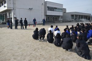 今回は「調理室からの火災発生」を想定し、全校生徒が速やかにグラウンドへ避難しました。突然の訓練にもかかわらず、生徒たちは落ち着いて行動し、私語もなく、非常にスムーズに避難することができました。