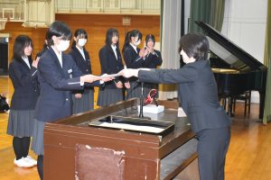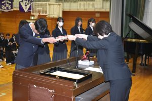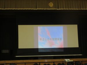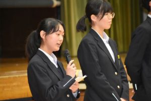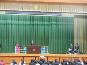 さらに、本校卒業生である坂口先生が、体を守るはたらきを調整する制御性T細胞を発見され、病気の治療に役立つ研究を続けてこられたことについてもお話がありました。世界中の人のためになる研究を長年続けてきたことが高く評価され、ノーベル賞受賞につながったそうです。「皆さんもぜひ頑張ってほしい」という温かいエールもいただきました。
