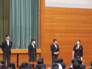 最後に、各委員会からそれぞれの活動方針が示され、いよいよ新生徒会の取組が本格的にスタートします。新生徒会の皆さんの今後の活躍を大いに期待しています。
