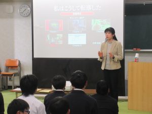 危険ドラッグなどの薬物を使用すると、脳の正常な発達が阻害され、心と体の両面に深刻な影響を及ぼすことがあると説明がありました。「脳がだまされる」「やめたくてもやめられなくなる」。薬物依存は“意志が弱い”ことが原因なのではなく、脳の仕組みによって自分でコントロールすることが難しくなる状態であることを、分かりやすく伝えていただきました。