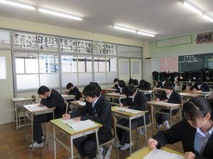 また、本日(1校時~5校時)1、2年生は実力テストを行っています。集中して黙々と問題を解いていました。