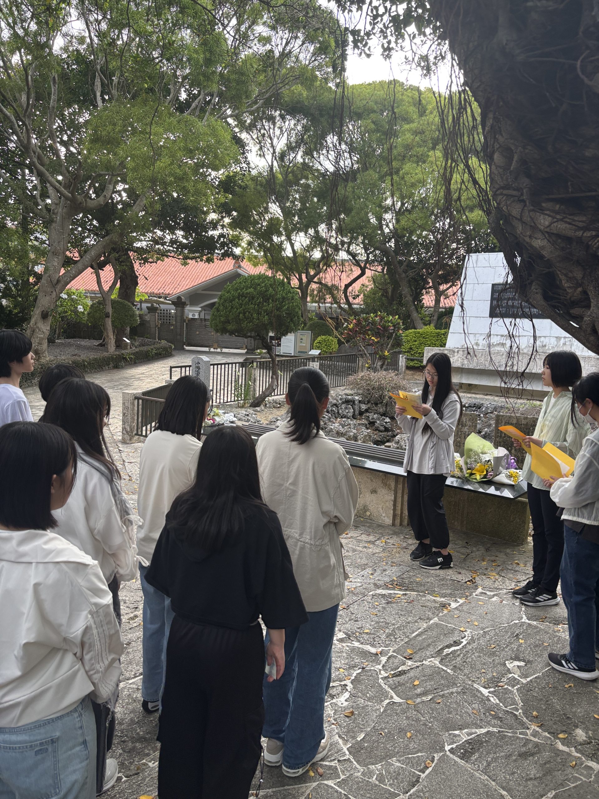 1日目はガマの入壕体験やひめゆり平和祈念資料館や平和の礎を訪れ、記念館前で平和セレモニーを行いました。