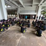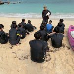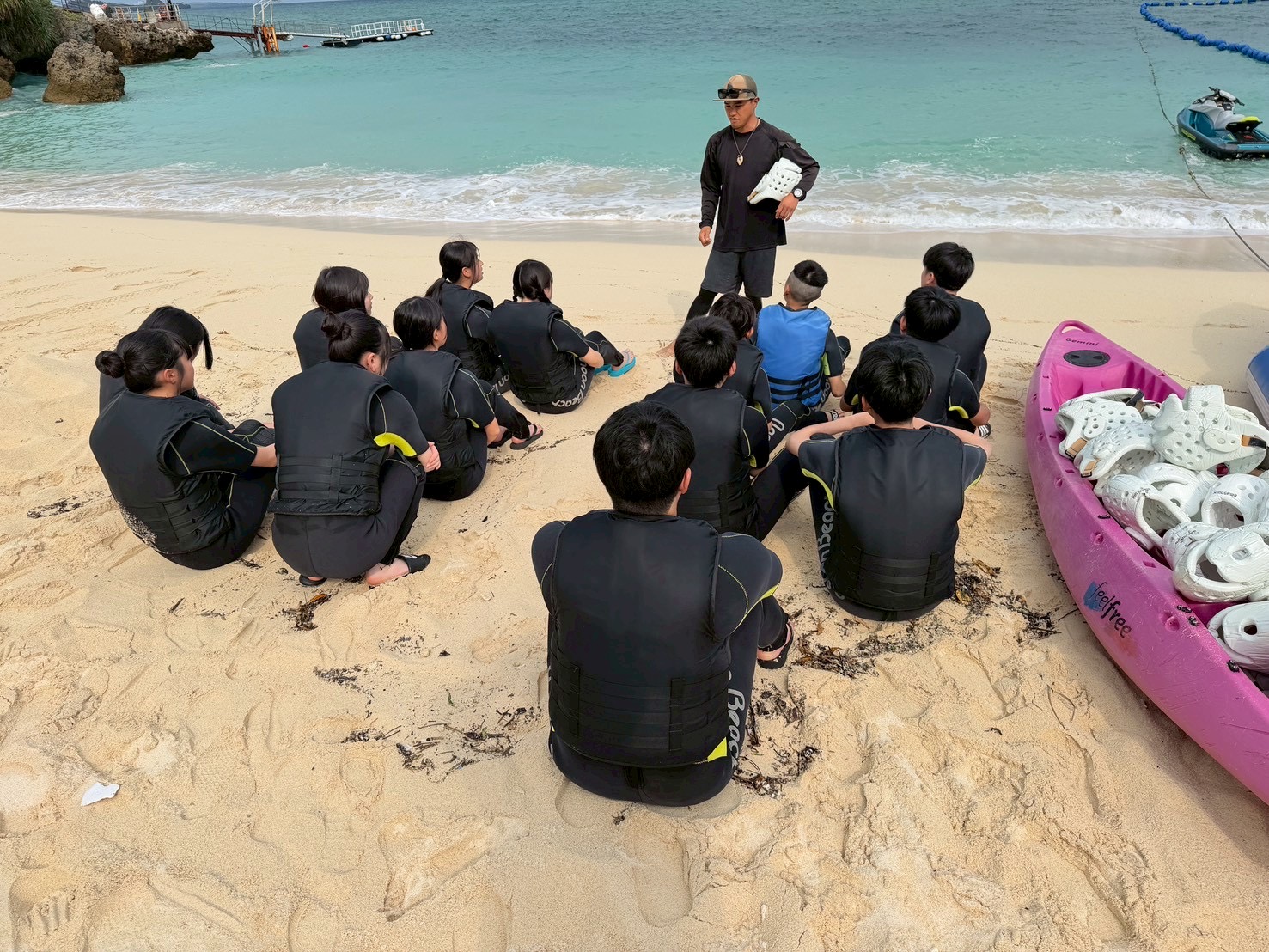 本日は体験づくし、午前中はマリン体験と文化体験、午後は民泊体験です。マリン体験はどうなるか心配ですが、生徒のみんなはとても元気です。2日目スタートです。