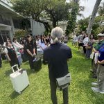 民泊のオーナーの方とお別れの会、退村式を行いました。寂しくて泣いてしまう子やあと1週間民泊したいという声が聞こえ、素晴らしい体験をしてきたことが伝わる式となりました。オーナーさんの見送りでバスで出発し、これから国際通りで買い物やお昼ご飯を食べて、沖縄最後の行程を満喫します。